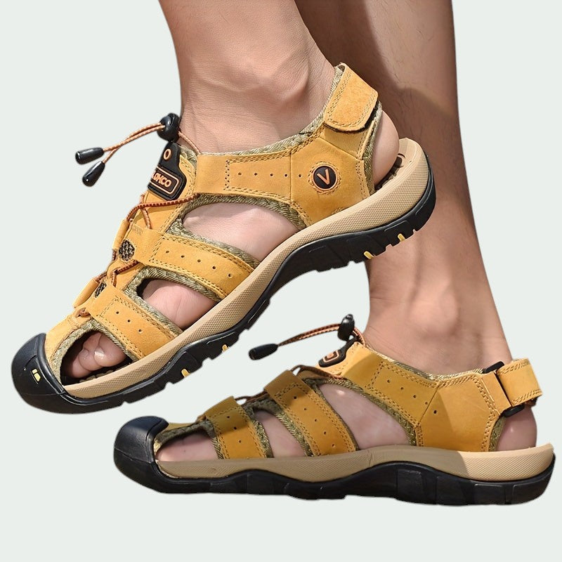 Die Ruben – Handgefertigten Rindsleder-Sandalen mit dicker Gummisohle (Herren) sind eine perfekte Kombination aus Stil und Funktionalität und eine vielseitige Wahl für den Frühling. Hergestellt aus hochwertigem Rindsleder bieten diese Sandalen außergewöhnlichen Komfort, was sie ideal für den aktiven Mann macht.